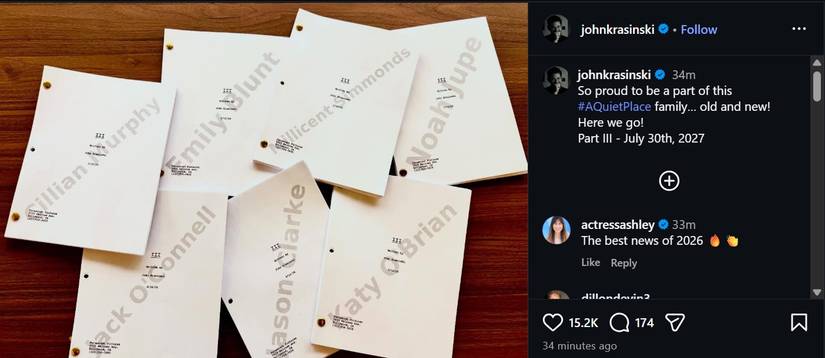 John Krasinski anunció el elenco de la próxima película A Quiet Place en Instagram. Cillian Murphy regresará y Jack O’Connell se unirá al equipo como nuevo miembro.