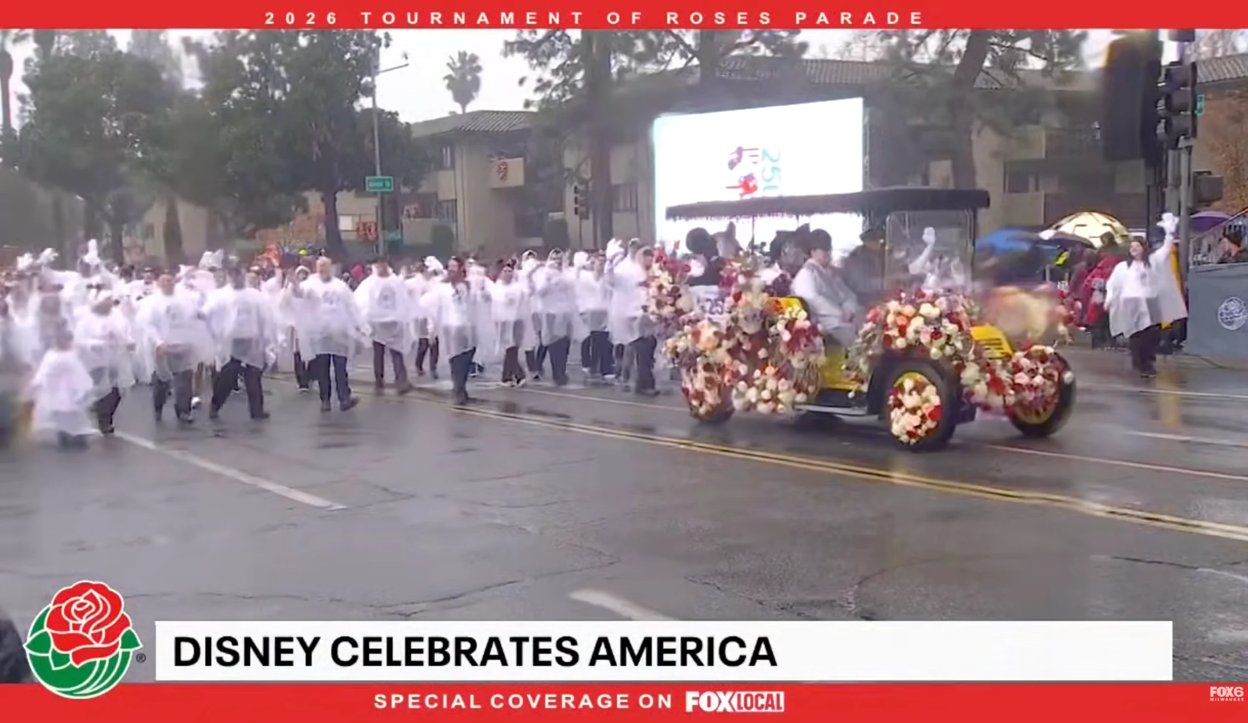 Mickey Mouse y sus amigos encabezaron el desfile “Disney Celebrates America” de Disney, junto con más de 50 miembros del elenco de Disney que también son veteranos militares estadounidenses y sus familias. El desfile contó con una carroza especial de Disneyland decorada con flores rojas, blancas y azules bellamente dispuestas.