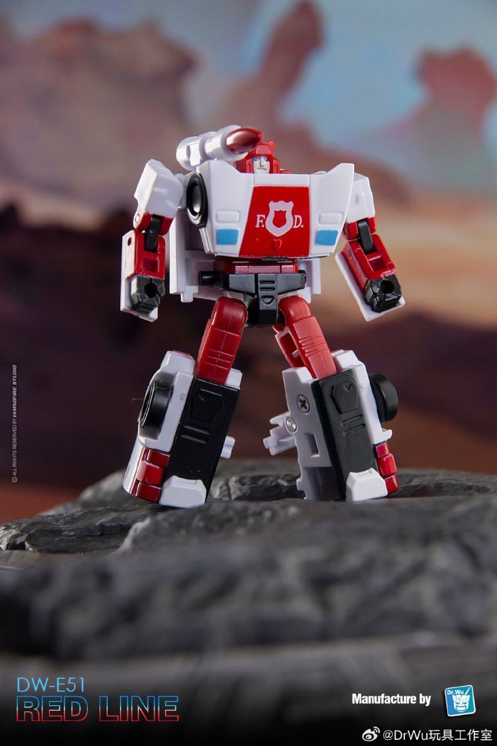 Los juguetes DW-E51 Red Line y DW-E52 Frenet se basan en los personajes clásicos de Transformers de Generación 1, Red Alert y Barrage. Red Line es un cambio de color de un juguete existente y, al igual que Red Alert, se transforma en un Lamborghini Countach LP500S. Su diseño presenta la combinación de colores de un jefe de bomberos, principalmente blanco con detalles en rojo y negro, que es un reverso de los colores utilizados para el juguete Sideswipe. En forma de robot, incluye un misil extraíble montado en el hombro.