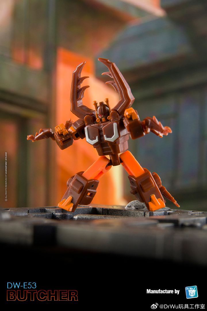 Dr. Wu está lanzando nuevas variaciones de color de cuatro figuras de juguete transformadoras: DW-E51 Red Line, DW-E52 Frenet, DW-E49Y Tiger Track y DW-E53 Butcher. Dos de estos diseños comparten el mismo molde base que otra figura de Autobot. Las figuras de Decepticon se basan en Insecticons menos conocidos y ofrecen variaciones más allá del trío estándar. Estos juguetes se venderán en pares y representarán otra versión de las figuras clásicas G1 de los “hermanos Lamborghini” de otros fabricantes.