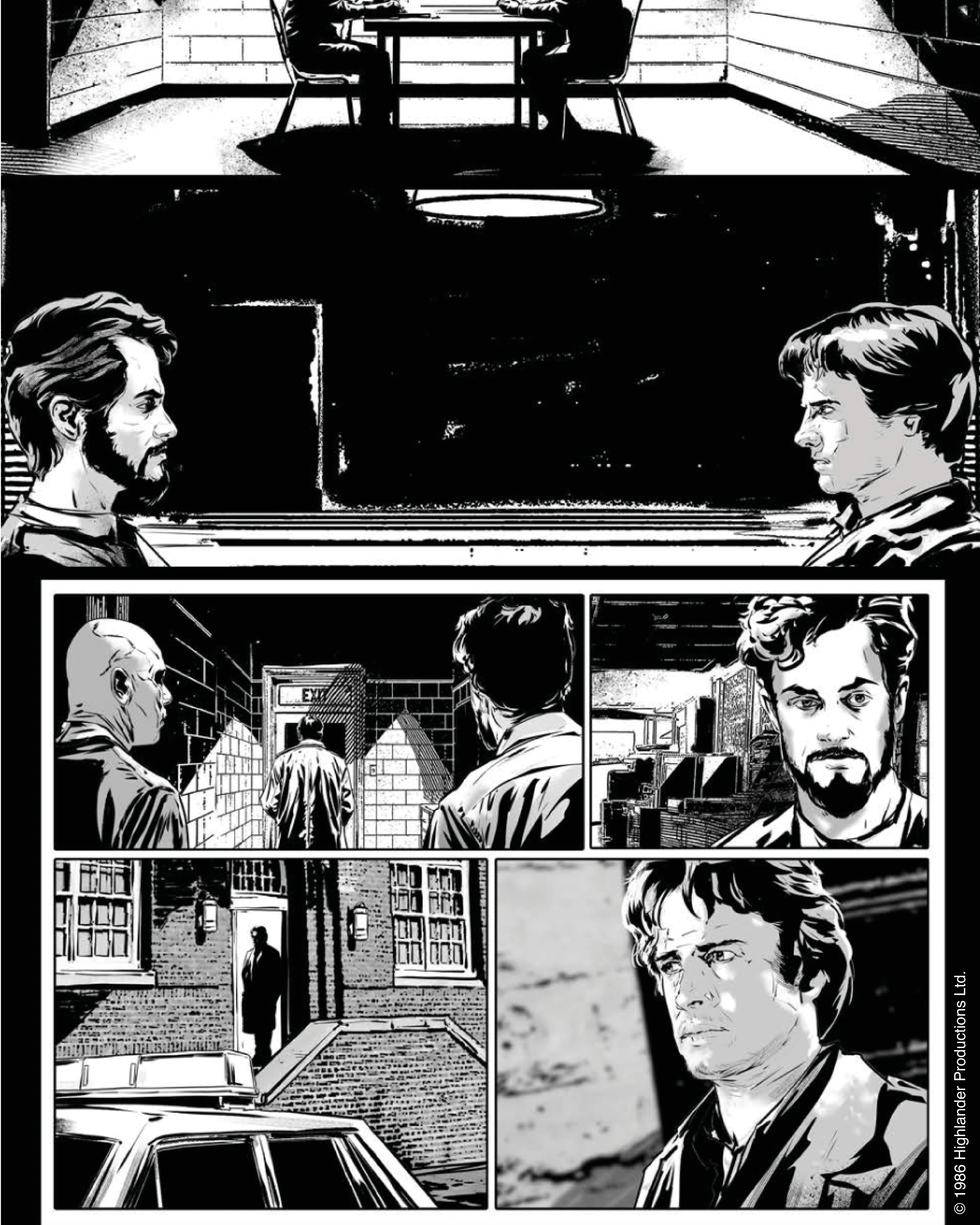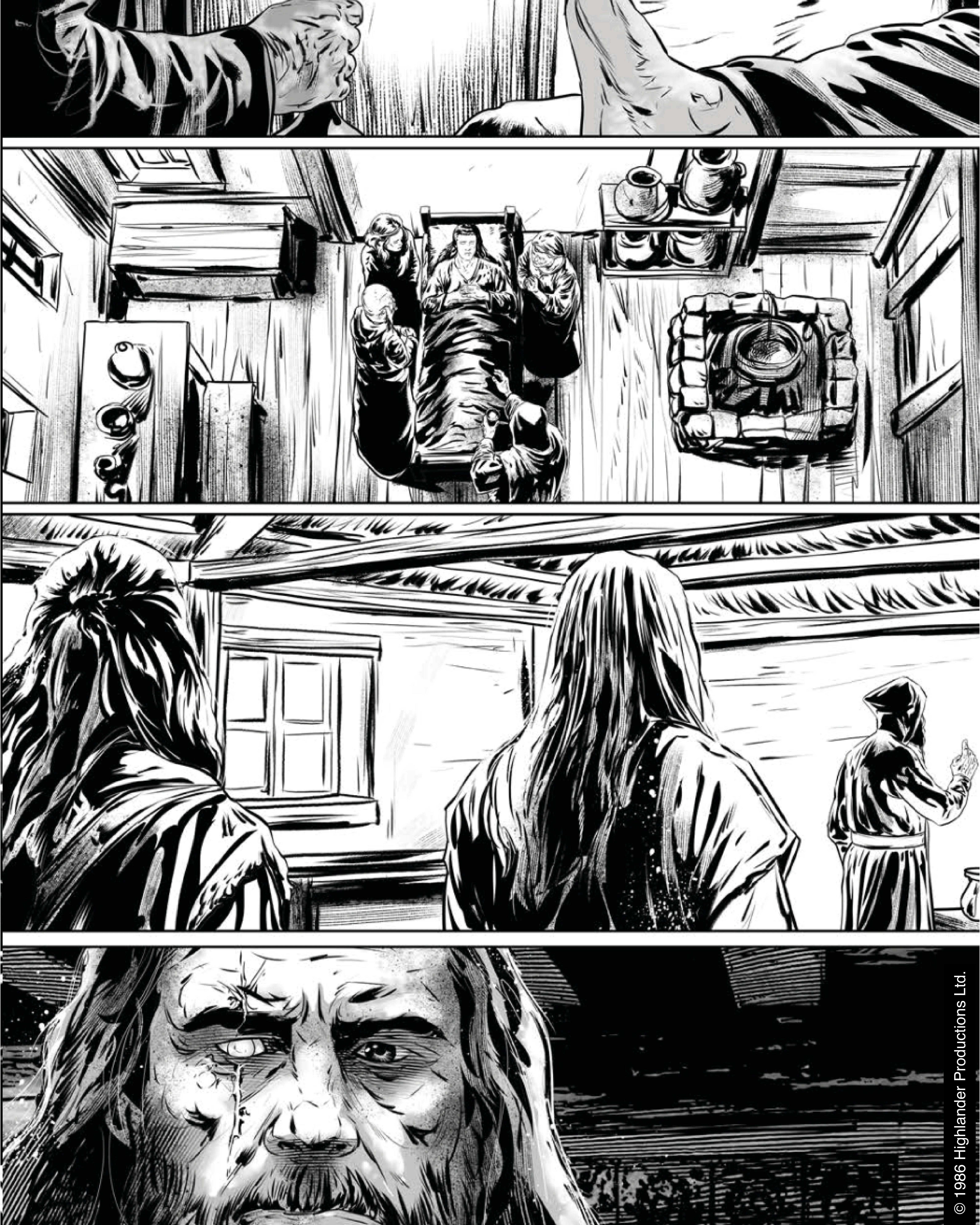 A continuación se pueden ver cuatro páginas sin colorear de Highlander: The Original Screenplay GN.