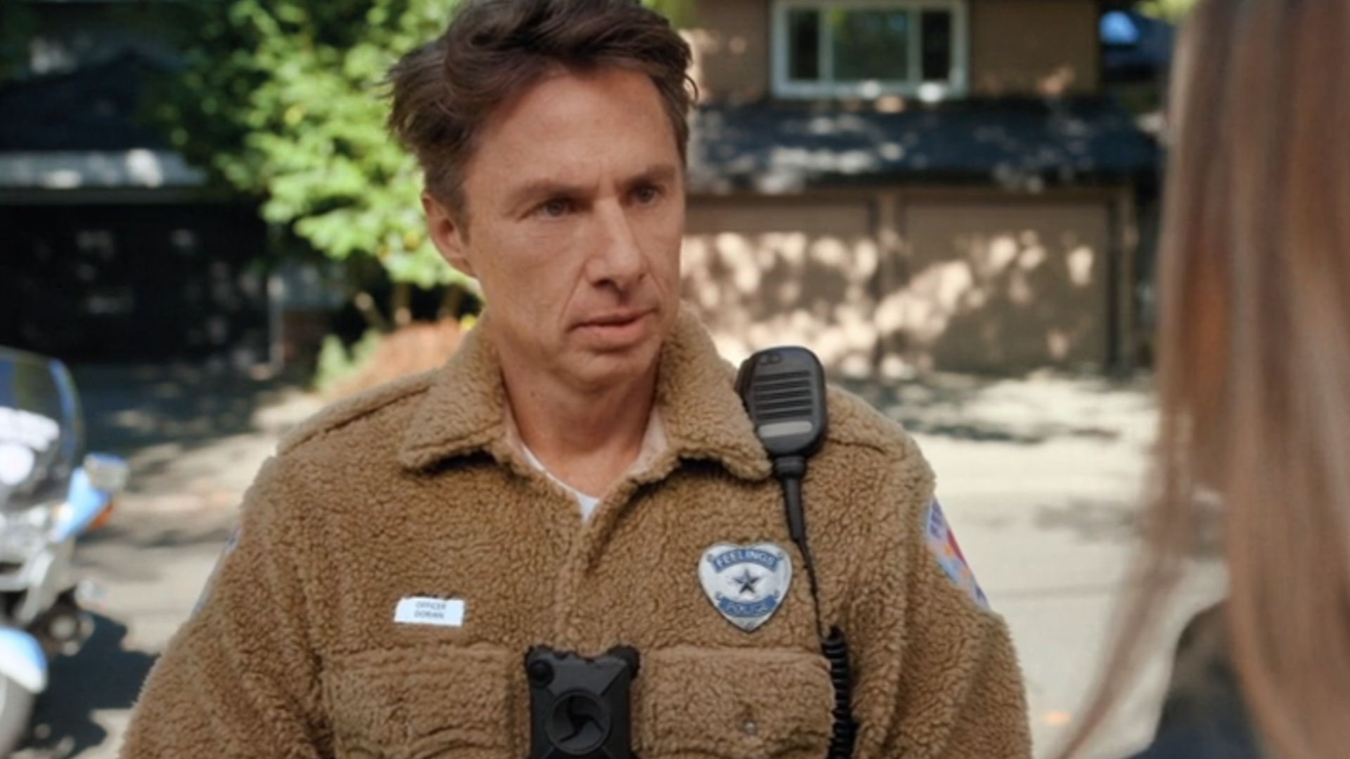 El Dr. Cox llama sarcásticamente a Sibby la “Policía de los Sentimientos” y, como de costumbre, JD toma ese simple comentario y lo sigue, imaginando un mundo elaborado a su alrededor. El resultado (un jingle pegadizo y un uniforme tonto para un “Policía de los sentimientos”) es exactamente el tipo de fantasía lúdica que le gusta a JD. Le permite interpretar al héroe, animar a la gente y, curiosamente, incluso conquistar a la chica. Esta secuencia captura perfectamente todo lo que hace que una fantasía de Scrubs funcione tan bien, y es fantástico ver que el programa sigue logrando esos momentos, incluso si lleva unos minutos llegar allí.