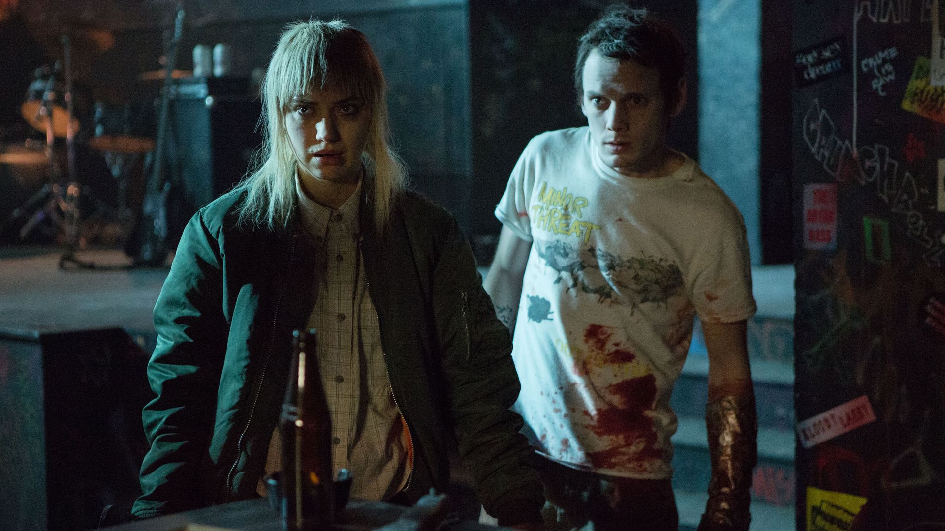 Bien, esta película sigue a esta banda de punk (Pat, Sam, Reece y Tiger) y aceptan lo que parece un concierto fácil y bien pagado en este lugar apartado. Resulta que las personas que los contratan son neonazis. Como puedes imaginar, eso no les sienta bien, y hacen una declaración al terminar su presentación con “Nazi Punks F Off” de los Dead Kennedys, lo que, sí, inmediatamente pone las cosas tensas. Pero el verdadero problema comienza cuando accidentalmente ven algo que no deberían haber visto. Su jefe, Anthony, un tipo muy intimidante interpretado por Patrick Stewart, decide que saben demasiado y necesitan que los detengan. Es un desastre total y las cosas rápidamente se salen de control.