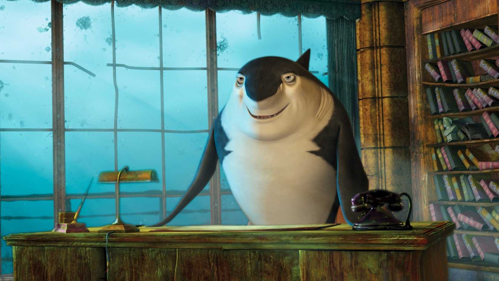 La película Shark Tale está claramente inspirada en las películas de gánsteres, principalmente por su trama. Se centra en Oscar, un pez con la voz de Will Smith, que se encuentra en problemas con la mafia de los tiburones después de que creen erróneamente que es responsable de la muerte del hijo del jefe. Robert De Niro interpreta a Don Lino, el intimidante jefe de la mafia de tiburones, en un papel típico de él, y Martin Scorsese le da voz a Sykes, un usurero pez globo que incluso luce las cejas reconocibles del director.