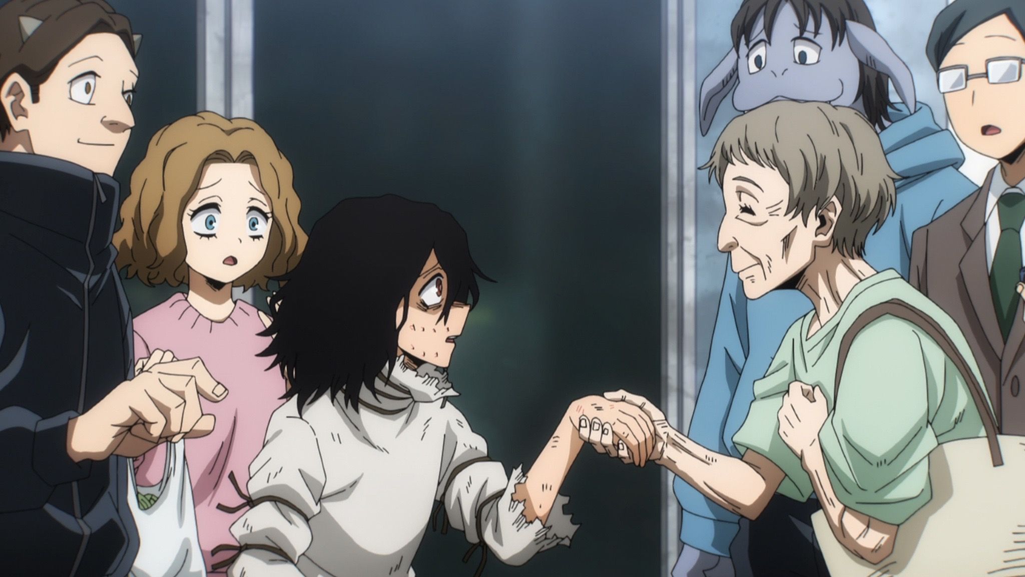 La historia de este villano contrasta con la de Shigaraki; en lugar de ser abandonado por el miedo de alguien, lo detiene una mujer mayor que valientemente toma su mano. Aunque ella misma está asustada, recuerda el heroísmo de Deku y encuentra el coraje para actuar. Esta historia ilustra poderosamente los problemas sociales que pueden crear villanos y cómo las acciones de Midoriya realmente marcaron una diferencia en el mundo.