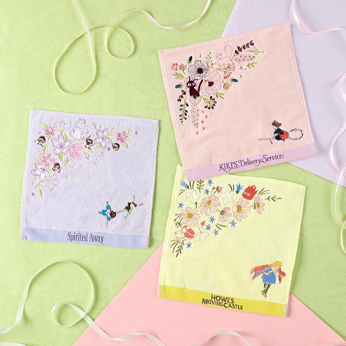 ¡Puedes encontrar minitoallas adorables inspiradas en los clásicos de Studio Ghibli! Hay uno con Kiki y Jiji de Kiki’s Delivery Service, otro con Haku y Chihiro de El viaje de Chihiro y un tercero que muestra a Howl y Sophie de El castillo ambulante. Cada toalla bordada cuesta 880 yenes, aproximadamente 5,50 dólares estadounidenses.