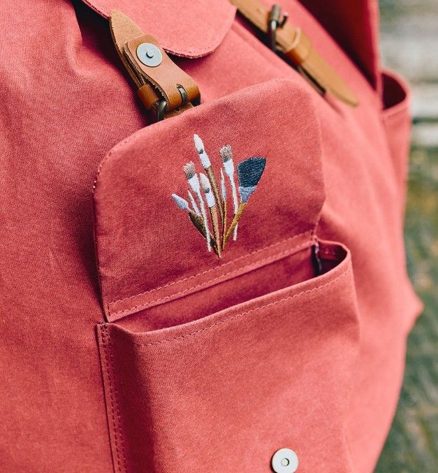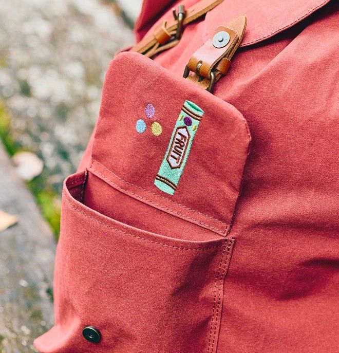 El diseño presenta pegatinas basadas en momentos memorables de la película. Un bolsillo exterior muestra el tubo de chicle de frutas que Ursula le da a Kiki en el auto, mientras que el otro muestra un juego de pinceles, que representan el amor de Ursula por la pintura. La parte posterior del diseño incluye una imagen bordada de Úrsula con su famosa mochila llena.